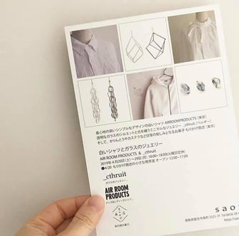 今回はギャラリーには伺えないのですが、シャツのブランドAir room productsとご一緒いたします。