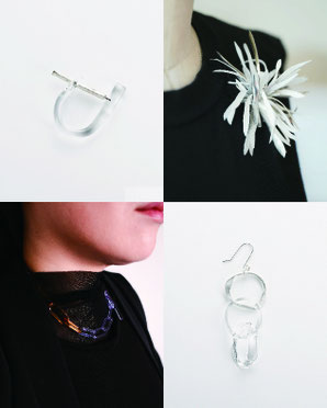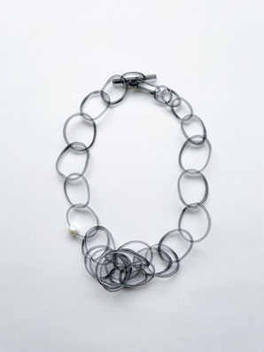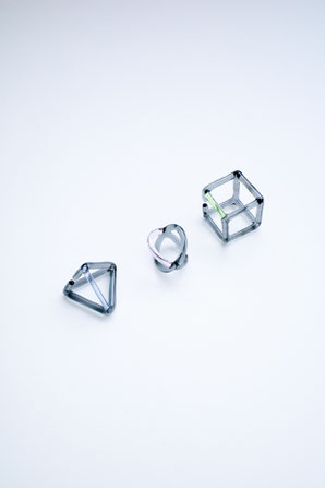 _cthruitからは、編み物のように正円を組み合わせたネックレスやピアス、空洞のネックレスやリングなどいろいろなアイテムをお持ちします。